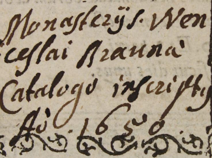 Monasterij S. Wenceslai Braunae Catalogo inscript[us] A[nn]o 1650