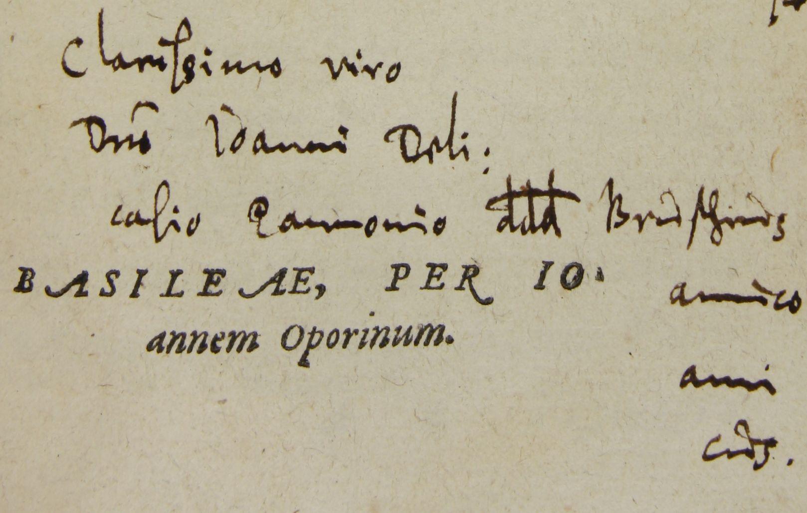 Clarissimo viro D[omi]ni Ioanni Deli:casio Cannonico  ddd. Bruschius amico anni cuis.