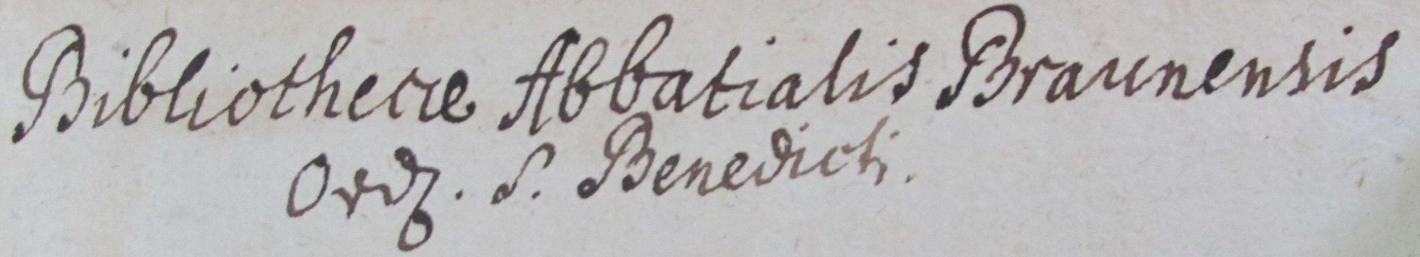 Bibliotheca Abbatialis Braunensis Ord[inis] S[ancti] Benedicti