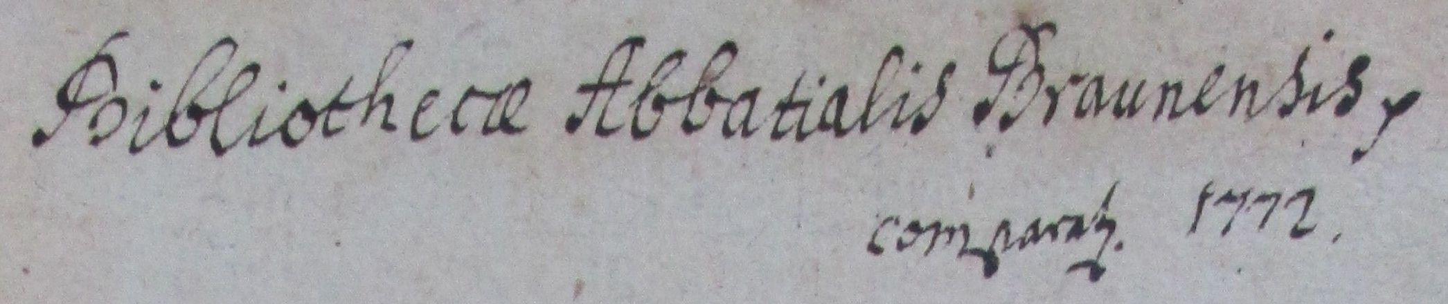 Bibliotheca Abbatialis Braunensis comparat[us] 1772