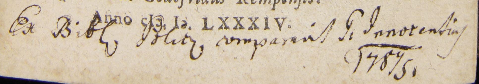 Ex Bibl[iotheca] Polic[ensi] comparavit P. Innocentius 1787