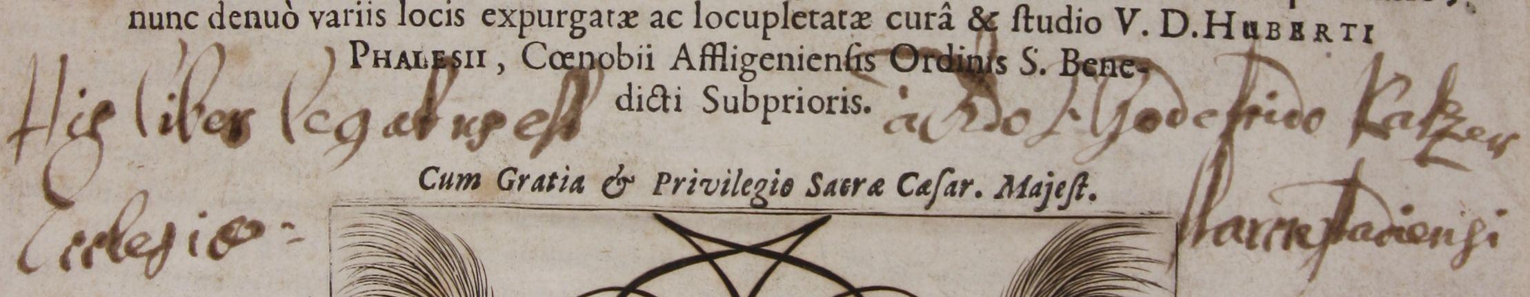 Hic liber legatus est à R[everen]do P. Godefrido Katzer Ecclesiae Starnestadiensi