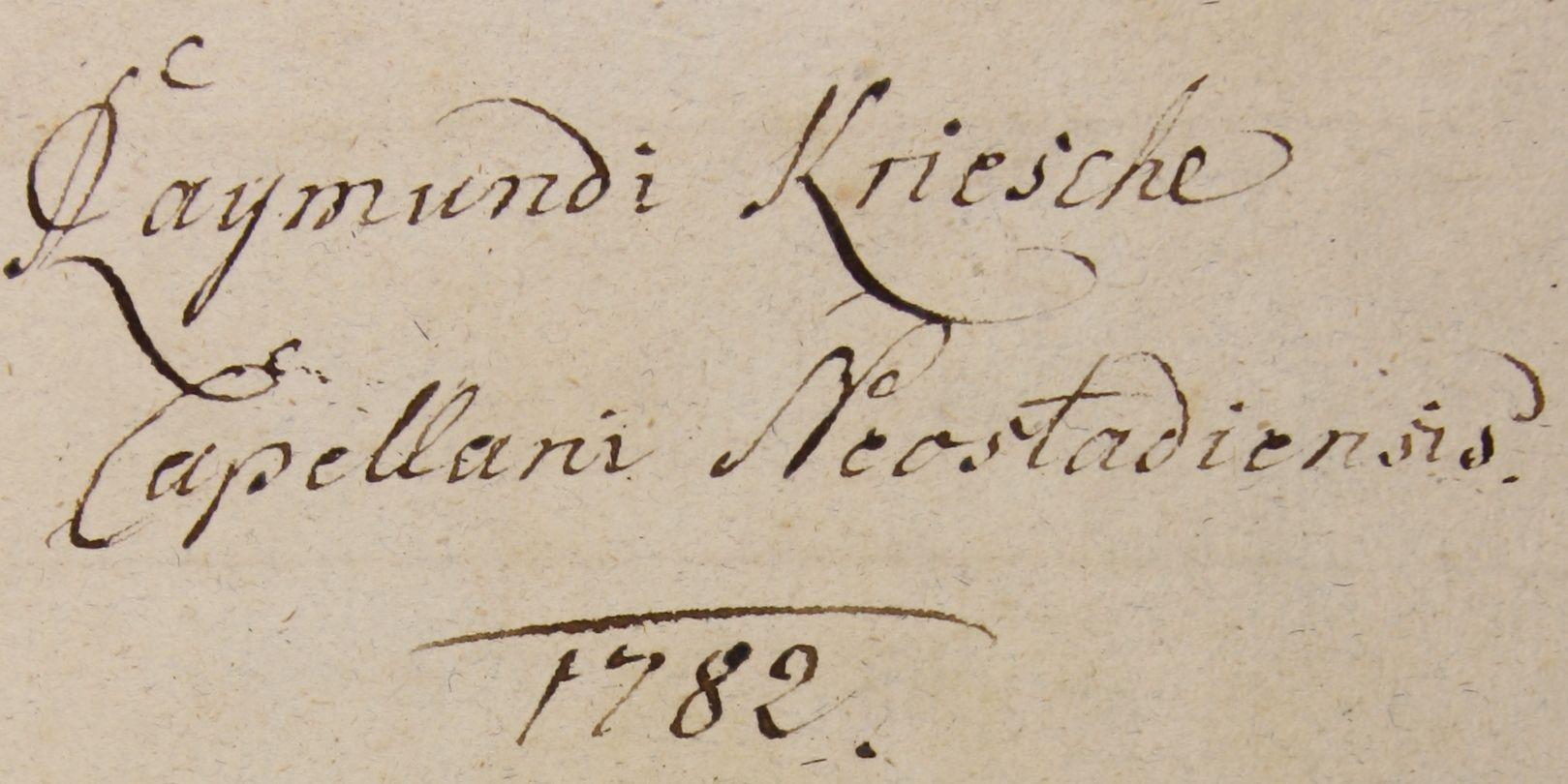 Raymundi Kriesche Capellani Neostadiensis 1782