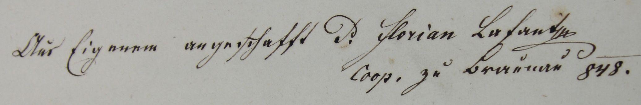 Aus Eigenem angeschafft P. Florian Lafant Coop. zu Braunau [1]848