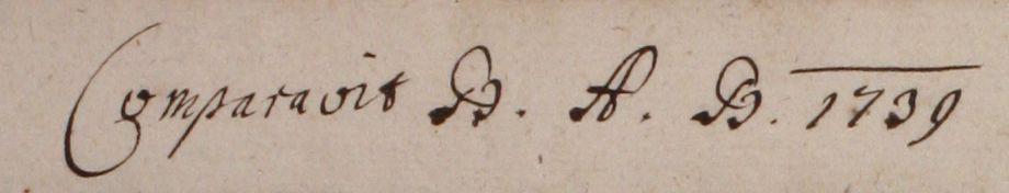 Comparavit B. A. B 1739