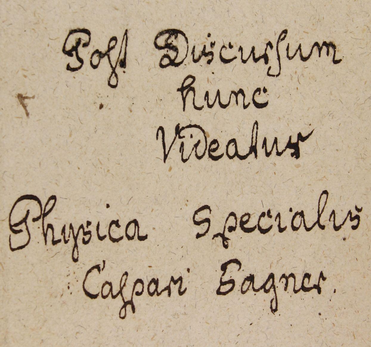 Post Discussum hunc Videatur Physica Specialis Caspari Sagner