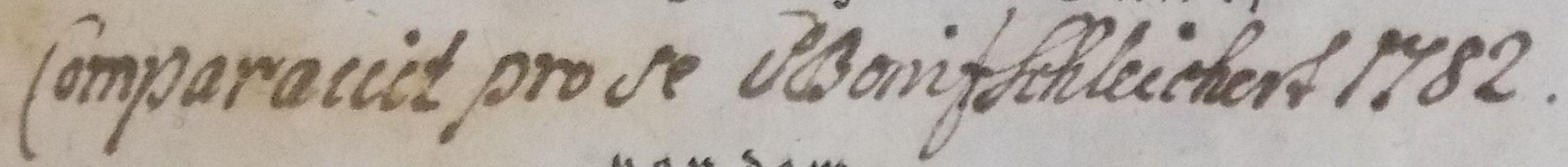 Comparauit pro se P. Bonif. Schleichert 1782