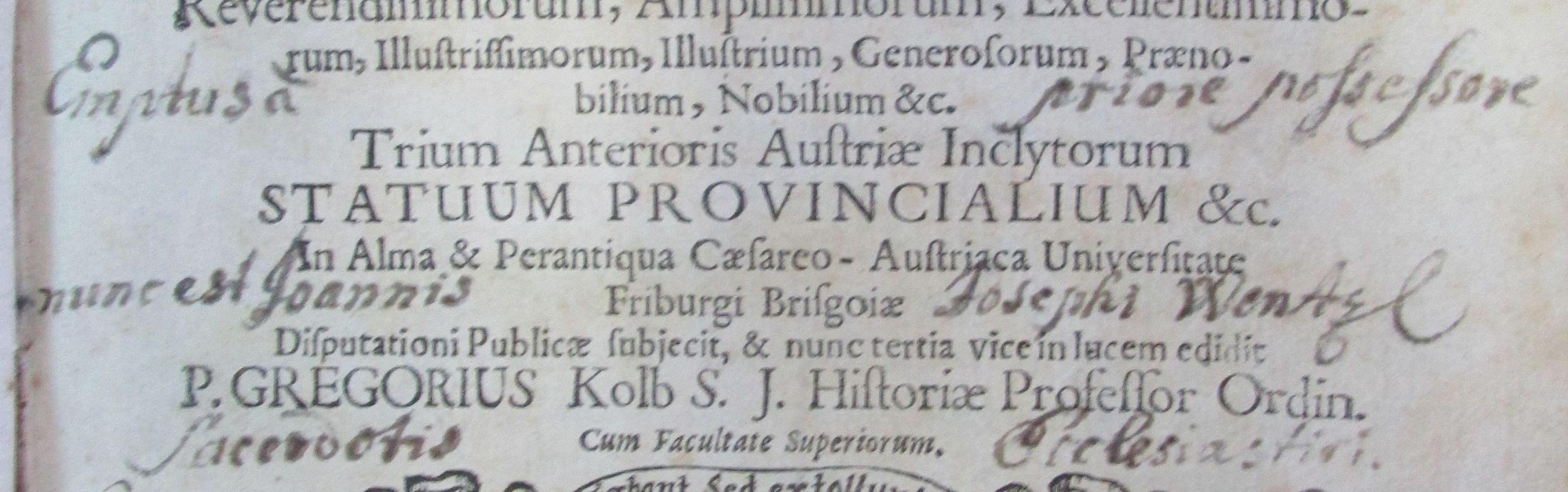 Emptus á priore possessore nunc est Joannis Josephi Wentzl Sacerdotis Ecclesiastici